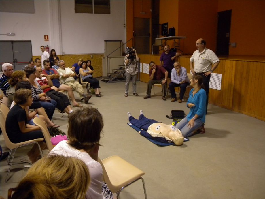 Posteriorment, amb l’ajuda d’un maniquí, s’han dut a terme simulacions de casos d’aturada cardíaca en les què s’ha fet participar al públic assistent. D’aquesta manera les persones que ho han volgut han pogut familiaritzar-se amb el desfibril·lador i aprendre a fer-lo servir idòniament.