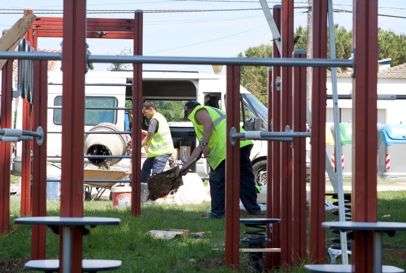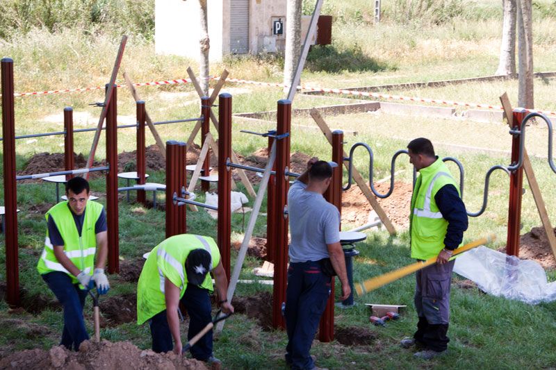 Imatges (del 6 de maig de 2011): els operaris instal·lant el Parc situat a la Urbanització Bon Relax, al municipi de Sant Pere Pescador.
