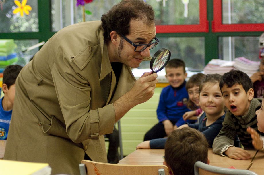 Imatge: actuació del Detectiu Queixal Corcat a l’escola L’Aulet de Celrà. Autor: Joanna Magureanu