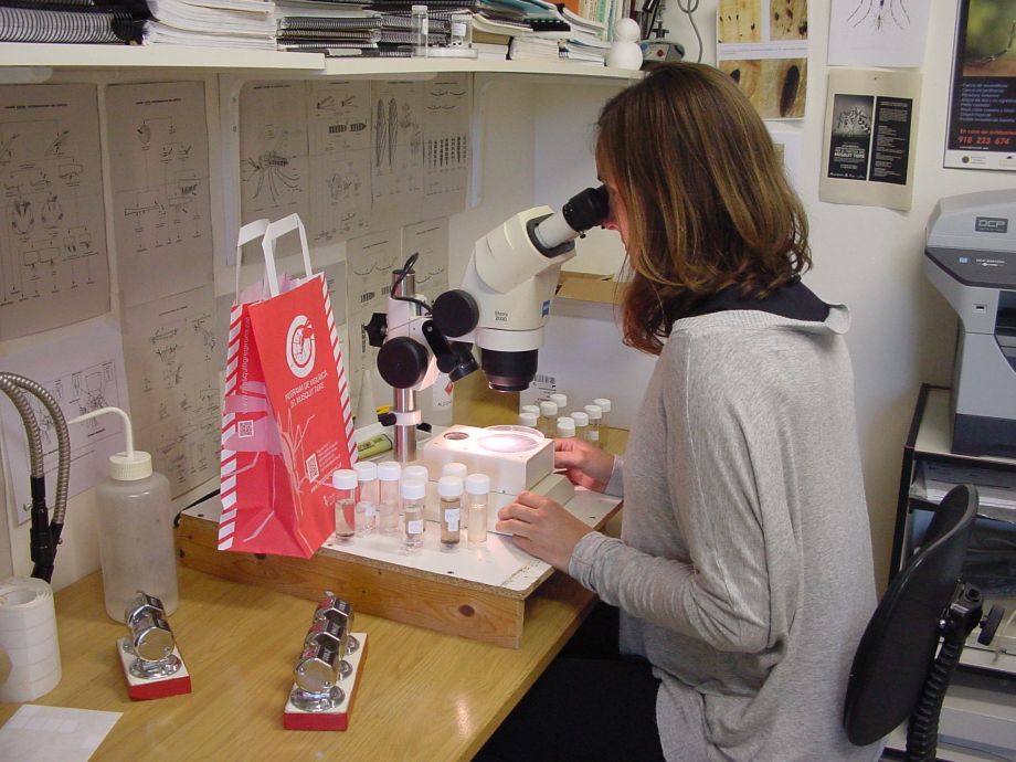 Imatge: tècnica del Servei de Control de Mosquits revisant les mostres per detectar larves de mosquit tigre. Autor: Servei de Control de Mosquits.