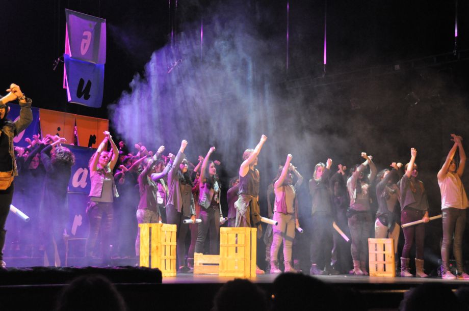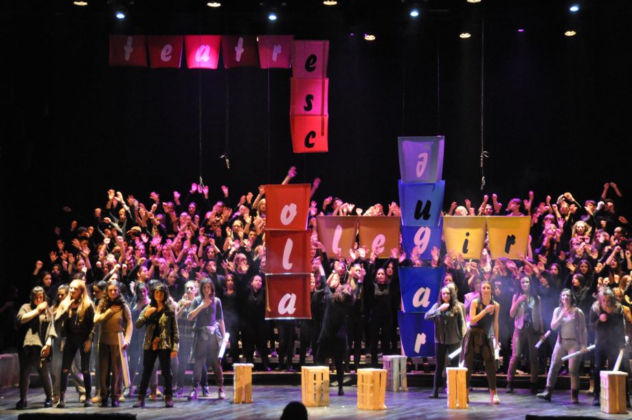 Un miler d’alumnes de secundària van participar en la cantata solidària sota la direcció de Mercè Rigau i Món Bover, la direcció artística de Cràdula Teatre i Emma Bover al teatre de Girona.