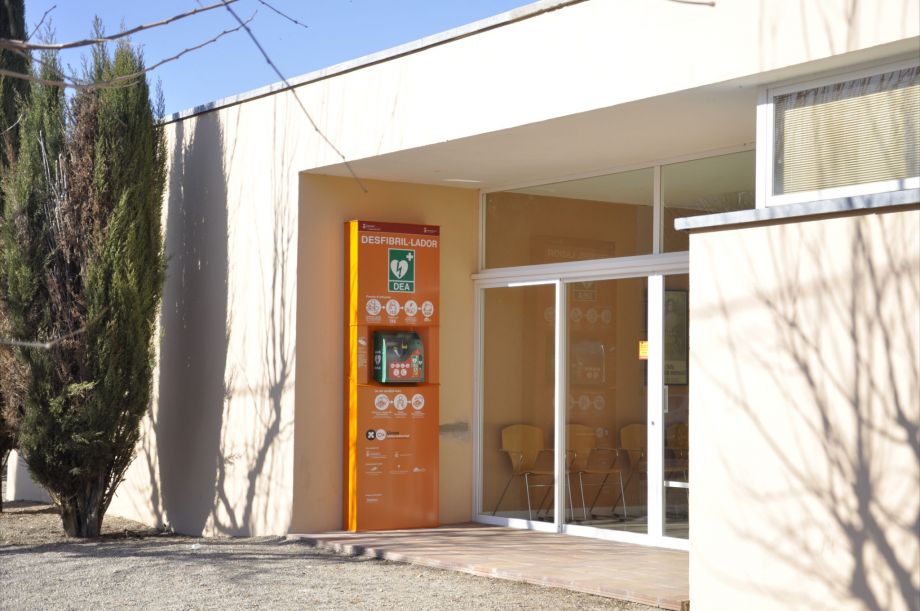 Imatge: desfibril·lador de Fortià, ubicat a la façana del dispensari mèdic. Font: Ajuntament de Fortià.