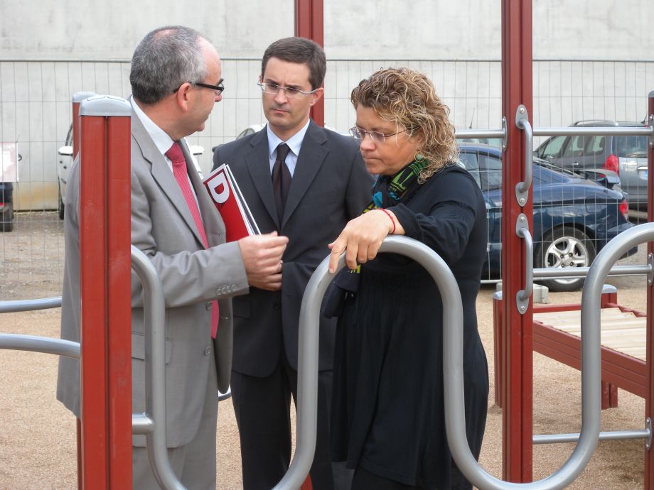 Imatge: la consellera de Salut, Marina geli, el president de Dipsalut, Josep Marigó i el gerent de Dipsalut, Marc Alabert en la visita al Parc Urbà de Salut que hi ha instal·lat davant la seu de l'Organisme.