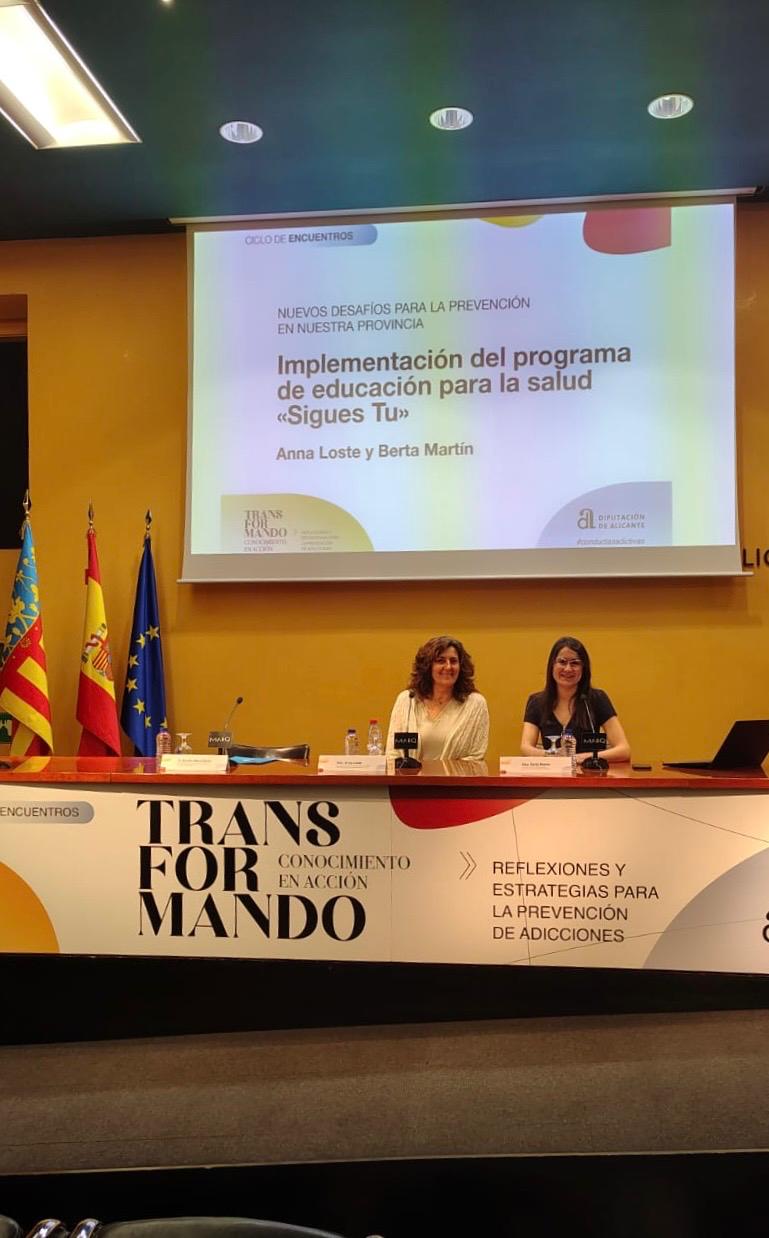 Concretament, a la segona trobada, que va tenir lloc el 15 de maig de 2025, centrada en la temàtica “nous desafiaments per a la prevenció a la província d’Alacant”, les tècniques responsables del programa de Dipsalut, Anna Loste i Berta Pla, varen presentar la ponència “Implementació del programa d'educació per a la salut «Sigues Tu»”.